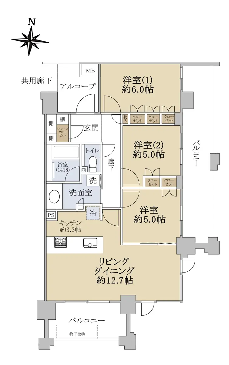 ◆専有面積:72.53㎡/間取り:3LDK