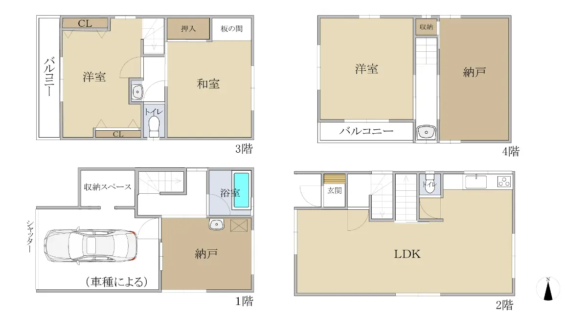 ☆1階車庫(車種による)に収納便利な納戸あり♪
