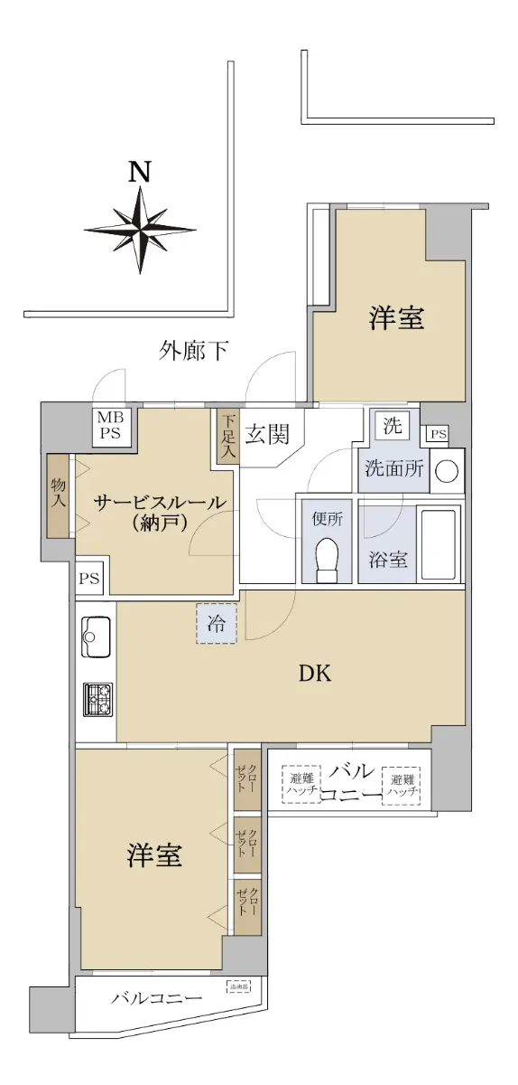 □間取り:2SDK