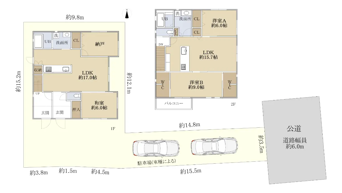 ・駐車2台可(車種による)