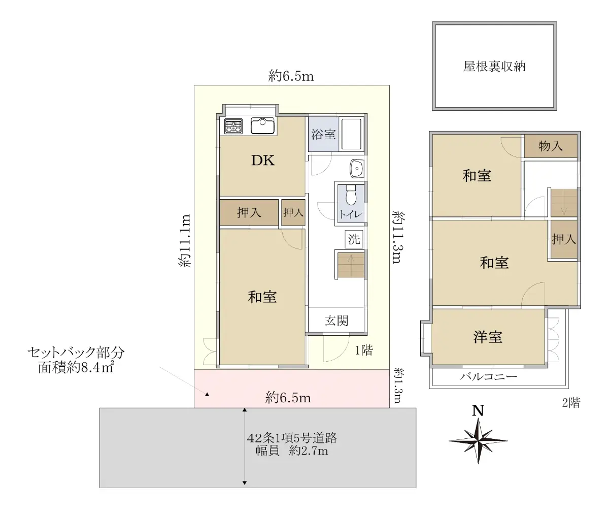 ◇接道状況:南向き 幅員約2.7m 接道約6.5m