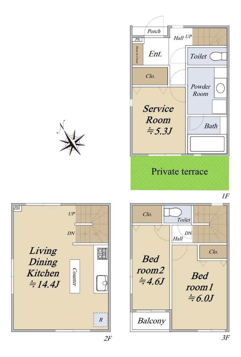 總樓層 1階部分/3階建