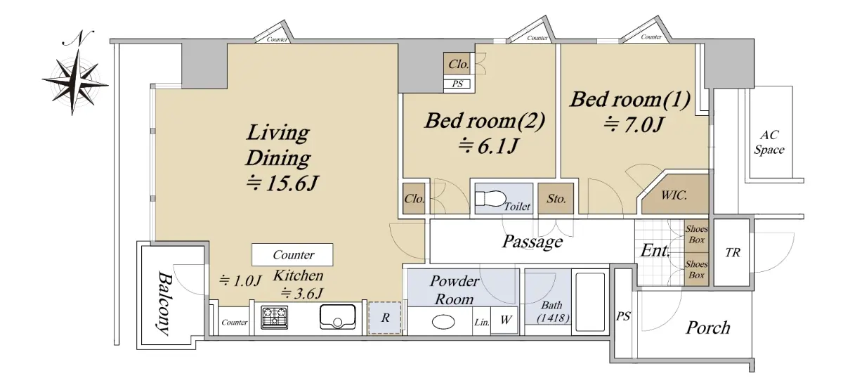 ■間取り:2LDK+WIC(3LDKから2LDKに間取り変更)