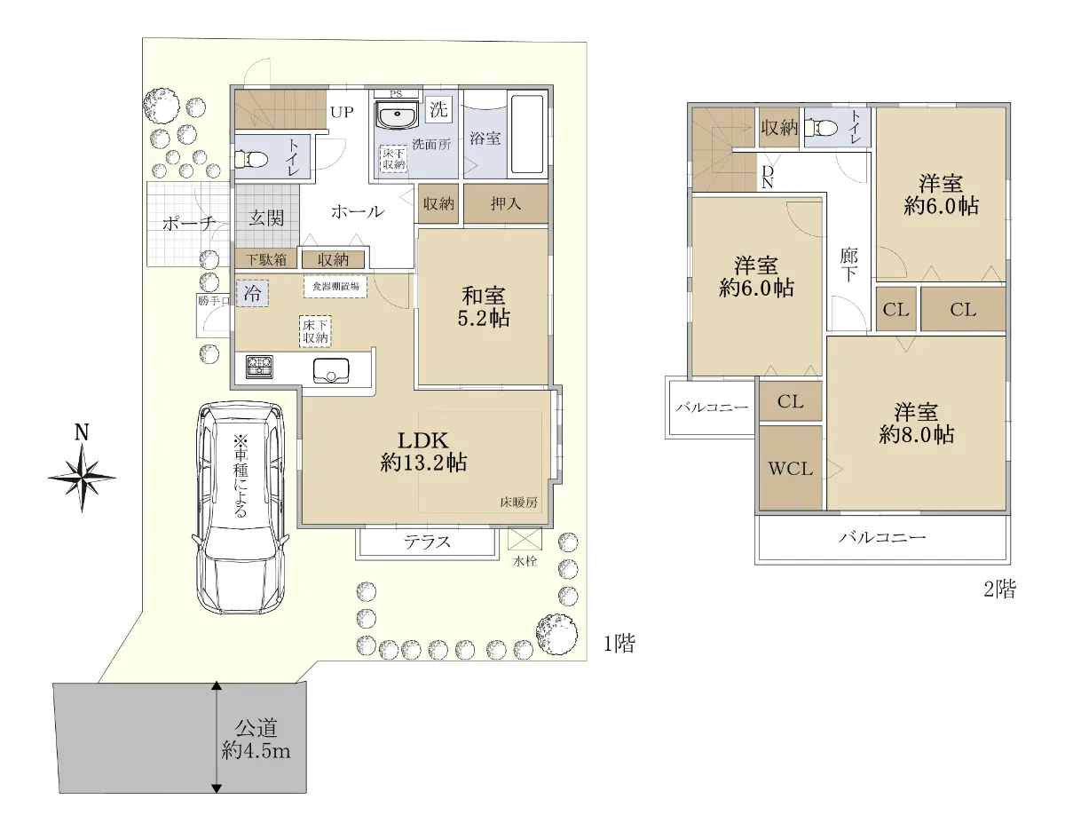 ■南側(各幅員4.5m)接道につき、日当たり・通風良好