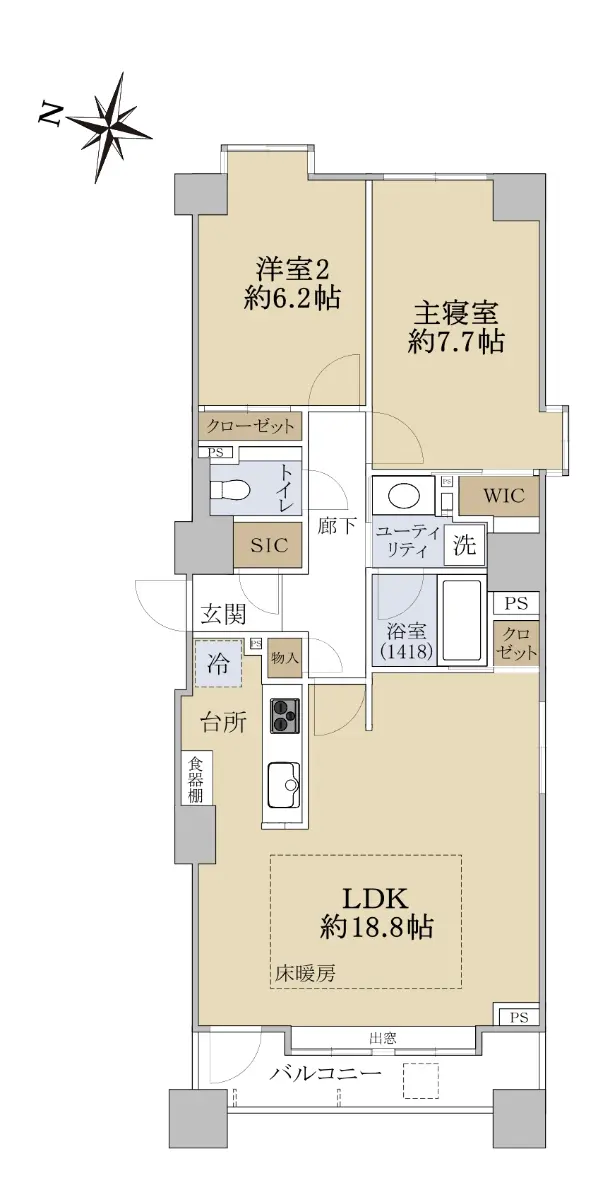 LDK部分は約18.8帖で、リビングダイニングには床暖房もございます。