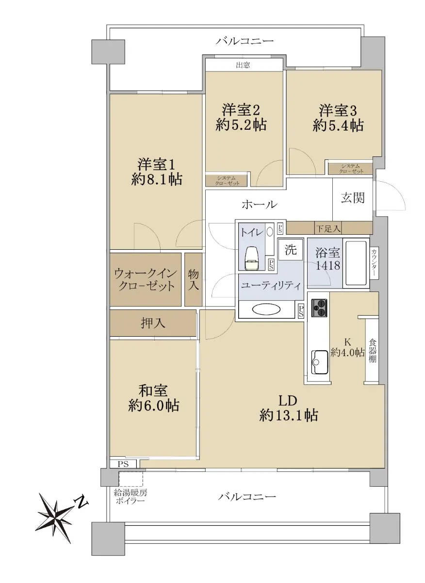 また、全居室に収納があり、洋室1にはウォークインクローゼットがございます。