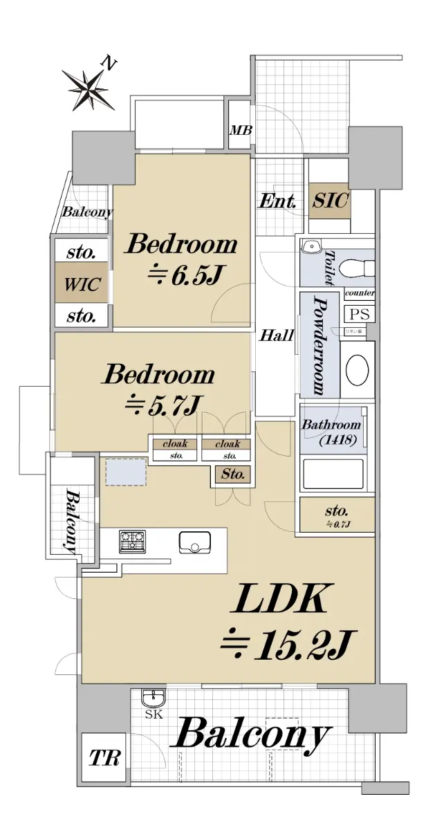 *収納豊富な2LDK+WIC+SIC+TR(トランクルーム)