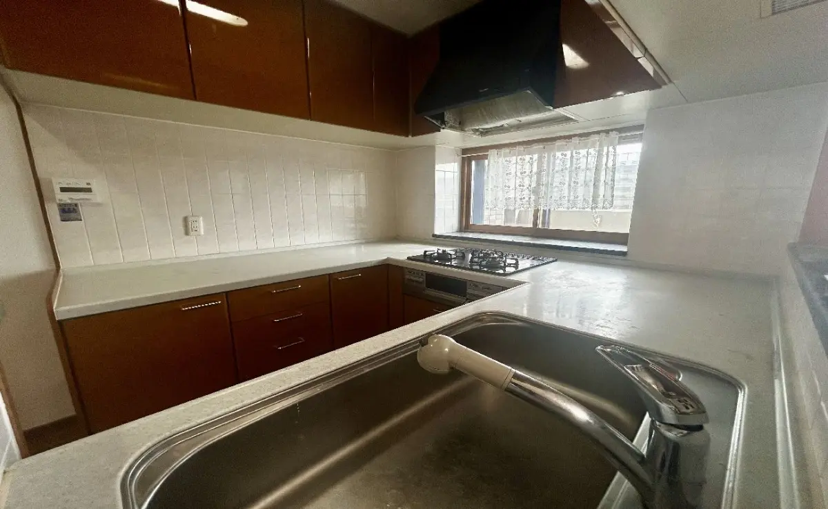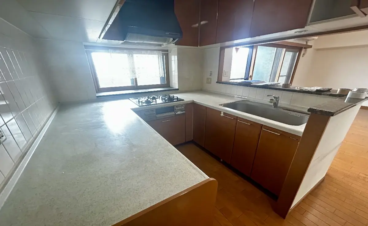 ・U字型キッチンにて調理スペース広々