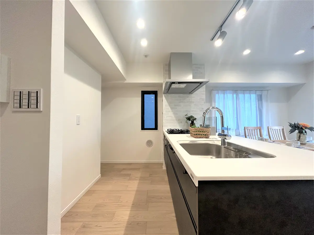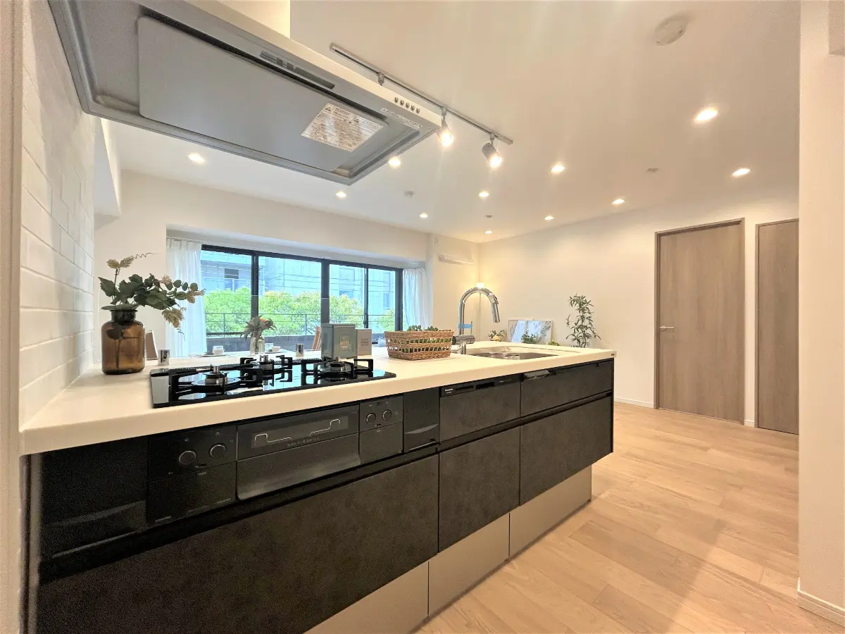 (人工大理石トップ・食洗器・浄水器一体型水栓・3口コンロ)