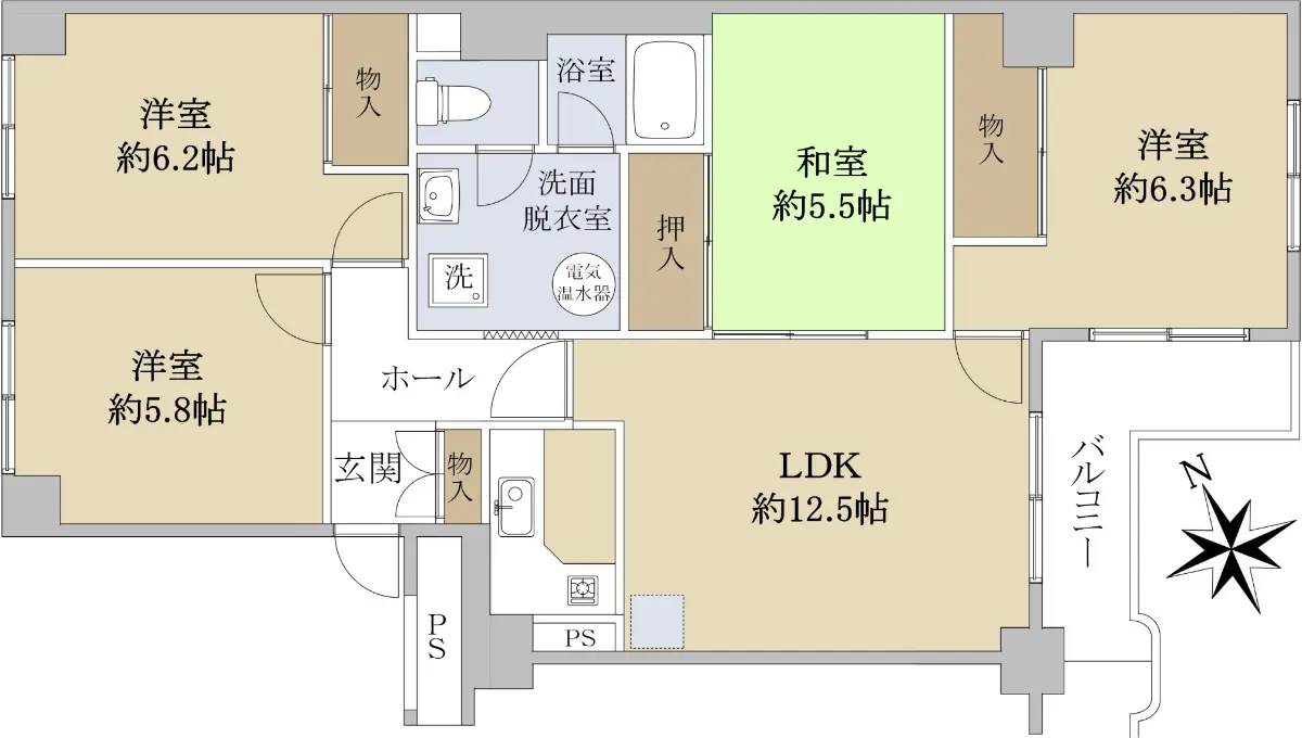 ◆専有面積:79.69㎡(24.10坪)4LDK