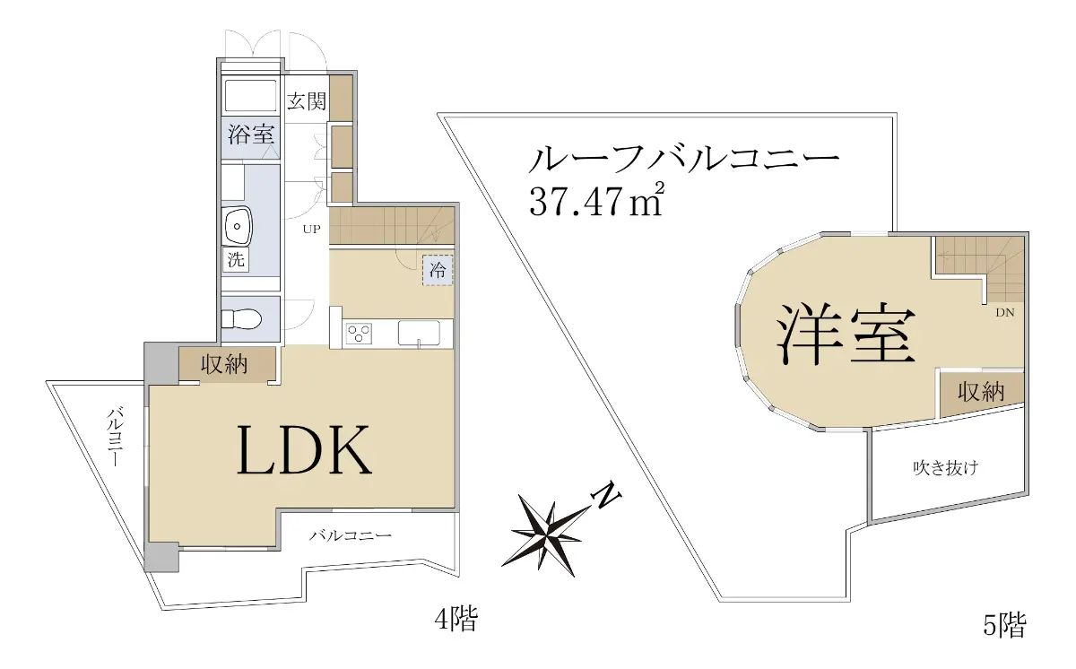 4階・5階の最上階メゾネットタイプの物件です。