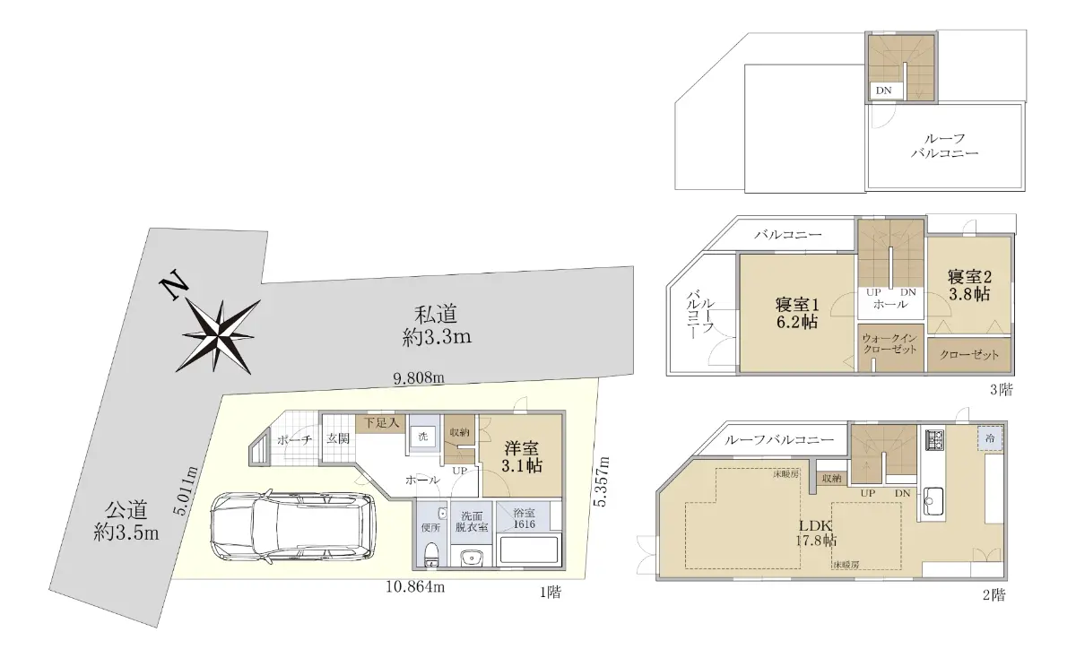 ◆土地面積:52.37㎡(約15.8坪)