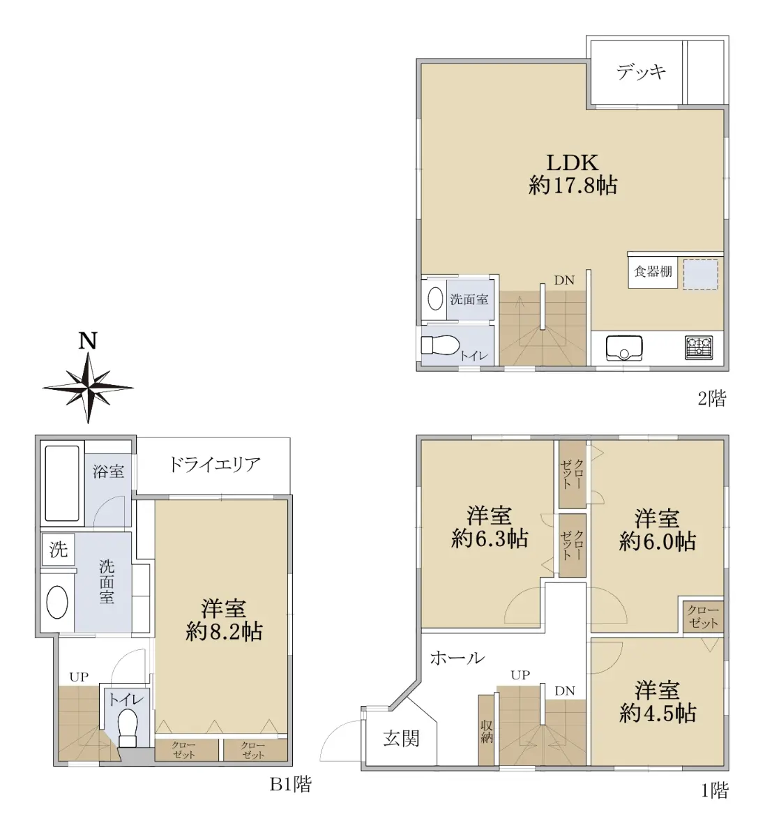 また建物は、4つの洋室と17.8帖のLDKとゆとりのある間取りとなっております。