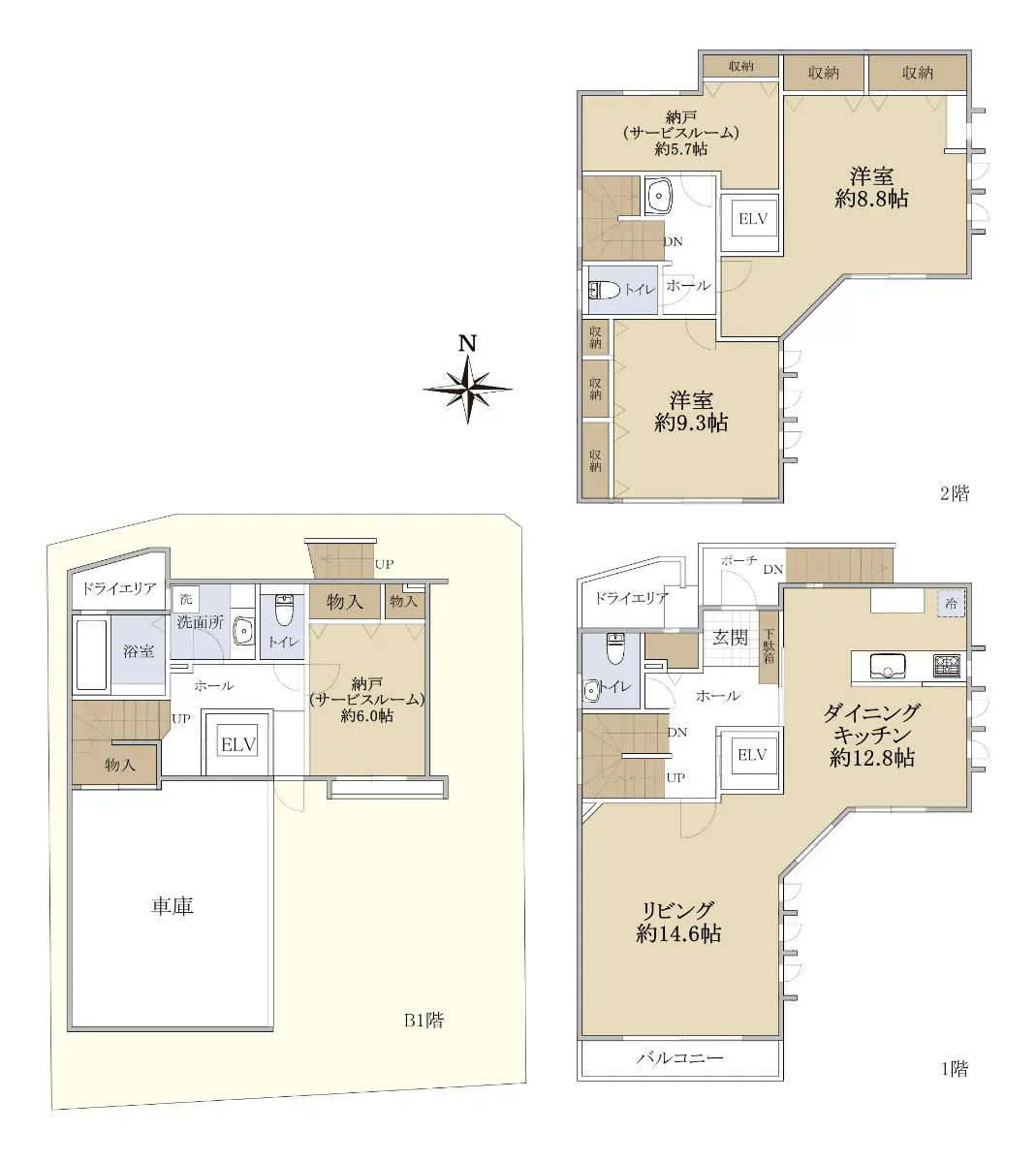 地下1階部分に半地下の車庫(車種による)がございます。