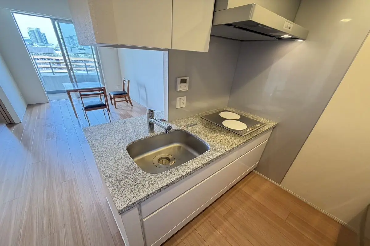 お部屋は33階建て6階部分。室内はオール電化を採用し、リビングには足元から温める床暖房、キッチンにはディスポーザー有と家事効率を高める設備が整っています。
