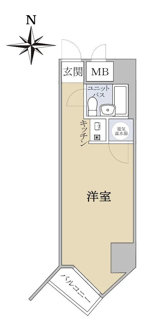 ■専有面積:22.88㎡(壁芯)、間取り:ワンルーム