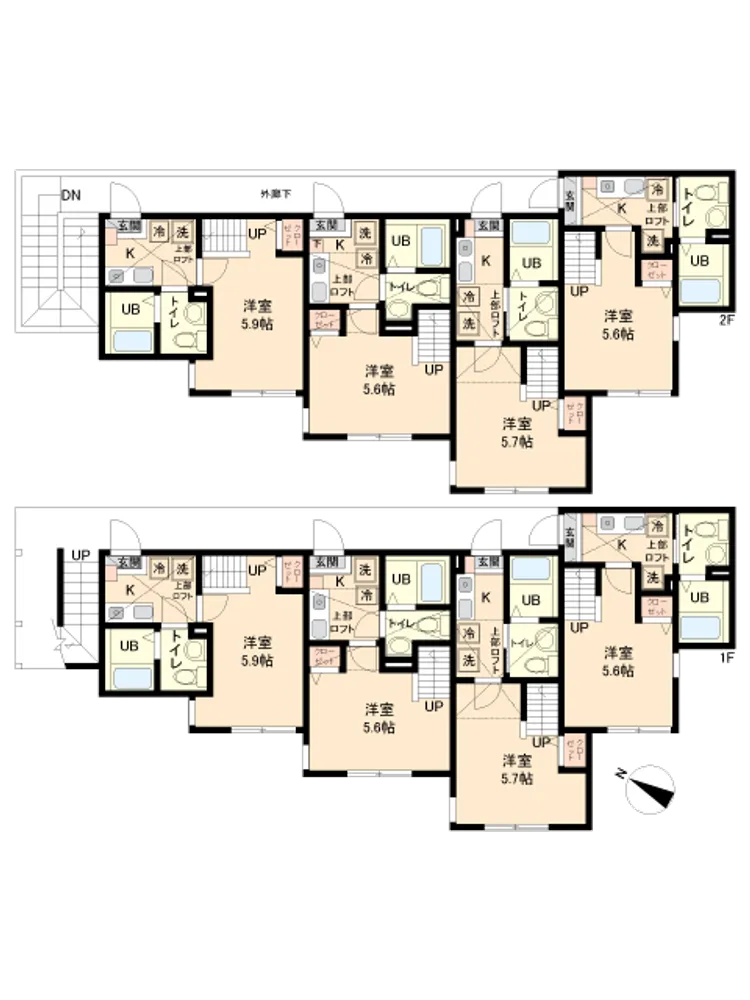 設備 瓦斯熱水供應器 / 公共下水 / 公営水道 / 東京電力 / 駐車場(空無) / 敷地内ゴミ置き場 / 室内洗濯機置き場 / 専用風呂 / 専用廁所 / 浴缸・廁所別 / シューズボックス / ロフト付き