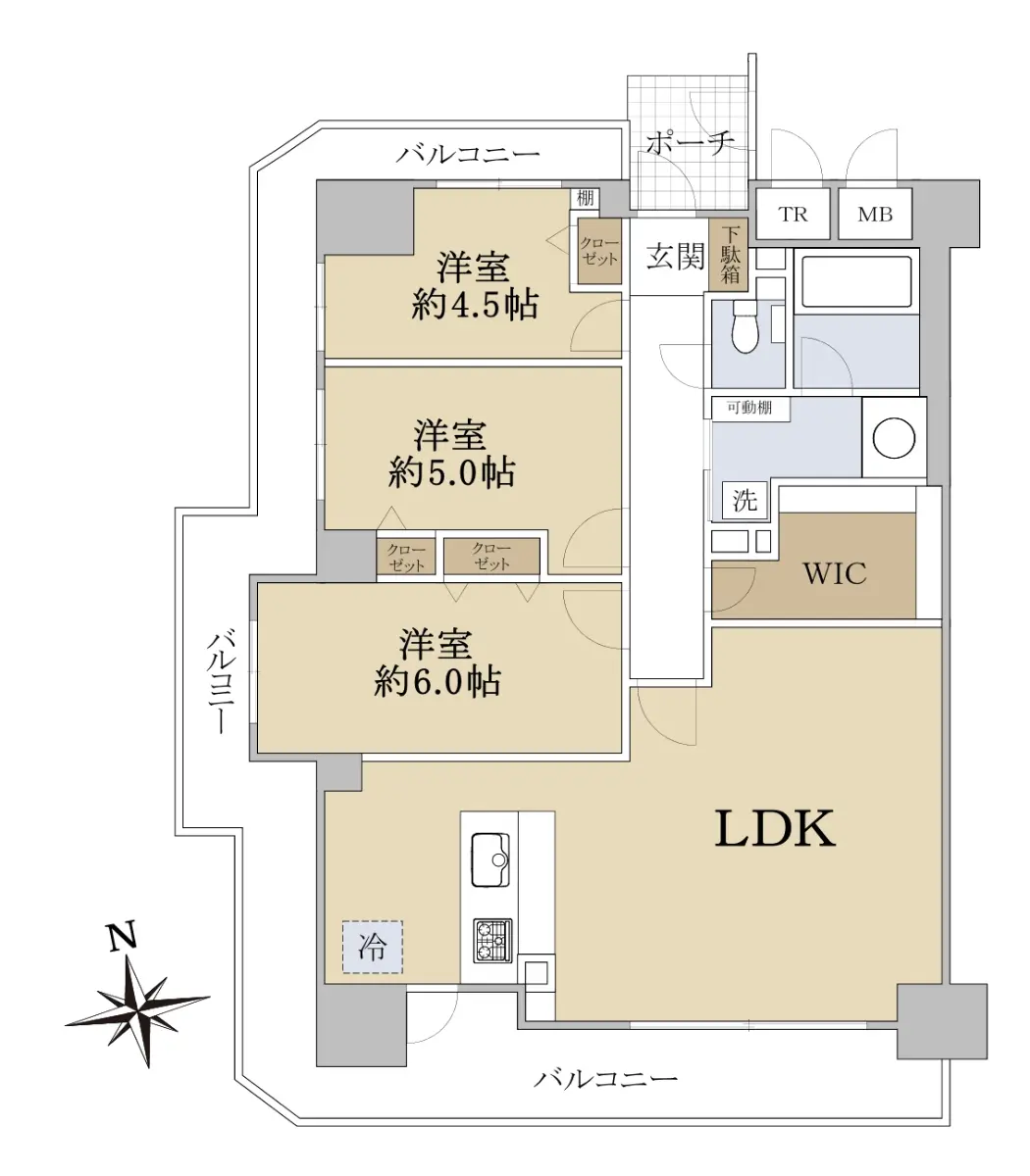 ◆三面バルコニー(南、西、北)