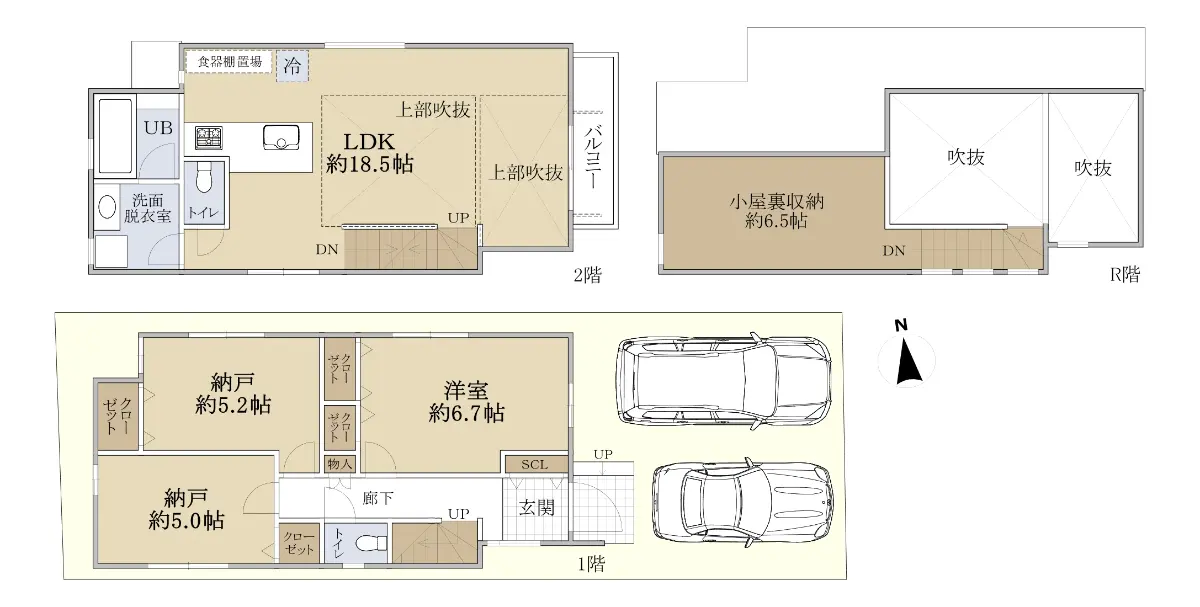 また、約6.5帖の小屋根収納があり、収納スペースも充実しております。