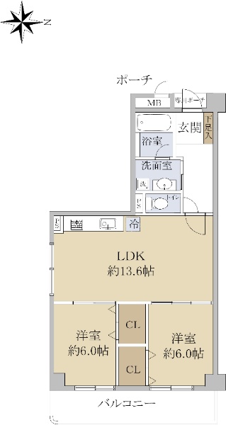 間取タイプは、2LDK(専有面積:57.55㎡)。